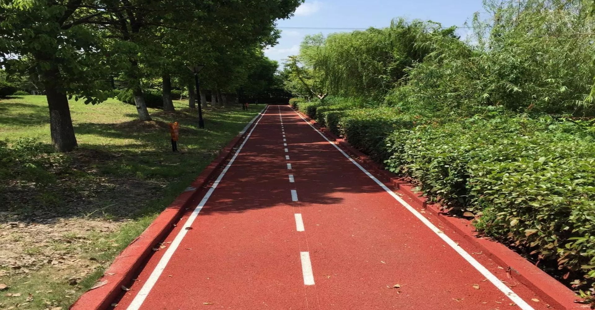 健身步道是一種多功能戶外體育設施。奧翔采用改性聚氨酯或彈性聚脲體為主要合成材料,集綠色、生態、休閑、健身等功能于一體,能滿足戶外多種運動需求,具有優秀的通透性能,為海綿城市做貢獻。